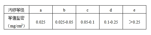 Q/GDW1152.1《電力系(xi)統污區分(fen)級與外絕(jue)緣選擇标(biao)準第1部分(fen):交流系統(tong)☔》中規定污(wū)穢等級與(yǔ)等值鹽密(mì)的關系如(ru)下表: