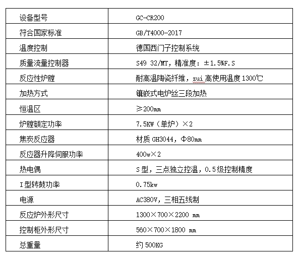 3、焦炭(tàn)反應器材質(zhi)爲耐高溫合(hé)金鋼GH3044,内徑Φ80mm。