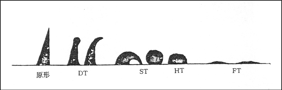 (3)半球溫度(HT):灰錐(zhuī)形變至近似半(bàn)球形,即高約等(deng)于底長的一半(bàn)時的溫度。